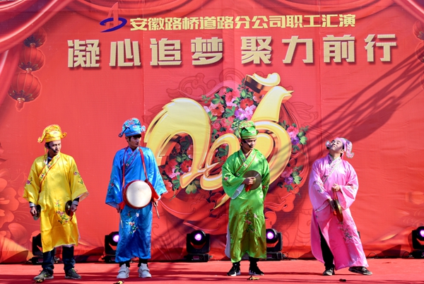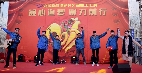 演出現(xiàn)場氣氛喜慶熱烈,座無虛席。伴隨著歡快熱情的舞蹈《追夢》,文藝匯演正式拉開帷幕。活潑幽默的三句半《工地那些事兒》,講出了路橋項目上那些點點滴滴;《舞曲串燒》的舞者們用幽默詼諧的舞姿,表達對新春的祝福;歌曲《青蘋果樂園》,展現(xiàn)了路橋青年人的自信、進取的精神風(fēng)貌;大氣磅礴的配樂詩朗誦《抗洪生命線》回顧了公司參加環(huán)巢湖大堤抗洪搶險整個過程,充分體現(xiàn)了“回報社會實現(xiàn)價值”的企業(yè)使命;舞蹈《千年等一回》、歌曲《江南·云水謠》充分展示了路橋職工們深厚的藝術(shù)底蘊;歌曲《你會到工地看我嗎》,通過情景劇的形式,充分表達了一線路橋員工的心聲;《生活有點咸》以相聲的的形式,展現(xiàn)路橋人真實的生活狀態(tài),也表現(xiàn)了路橋人苦中作樂、自強不息精神。