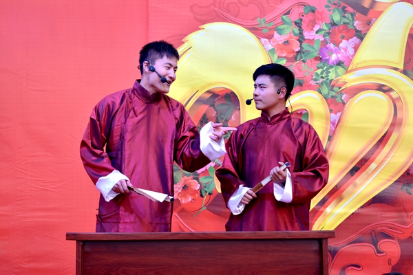 匯演結(jié)束后,公司領(lǐng)導(dǎo)和全體演員合影留念。(圖/韓登宇 審核/朱生才)