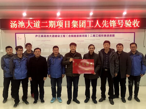 12月27日,集團工會調研專員吳曉伍在公司工會主席楊建強的陪同下,對湯池大道項目“工人先鋒號”創(chuàng)建活動進行考核、驗收,并現(xiàn)場授牌。