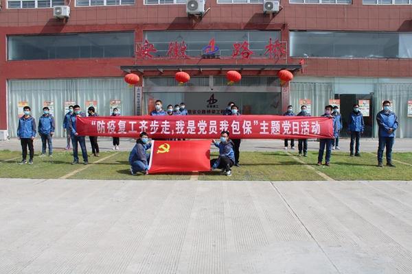 支部書(shū)記朱生才首先宣讀了“黨員包保責(zé)任區(qū)”活動(dòng)方案。黨員代表王祥在發(fā)言中表示,將堅(jiān)定信心,化危為機(jī),帶領(lǐng)員工快速實(shí)現(xiàn)復(fù)工復(fù)產(chǎn),確?!捌鸩郊礇_刺、復(fù)工即大干”,讓黨旗在防疫復(fù)工一線高高飄揚(yáng)。黨日活動(dòng)還就復(fù)工過(guò)程中如何做好宣傳、聯(lián)防聯(lián)控、安全隱患整改、早日恢復(fù)規(guī)模化施工等問(wèn)題進(jìn)行了梳理研究?;顒?dòng)最后,黨員同志一起重溫了入黨誓詞。