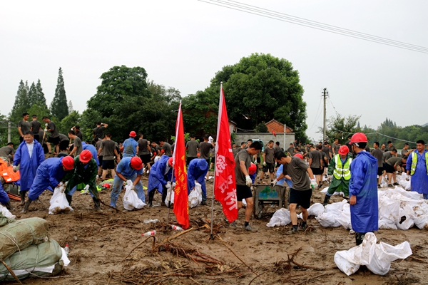 7月23日,路面公司組建的防汛抗洪搶險救援隊在完成同大圩保衛(wèi)戰(zhàn)后,又快速集結(jié)隊伍,冒雨逆行,轉(zhuǎn)戰(zhàn)增援紫荊村小南河抗洪搶險,和正在參與抗洪搶險的解放軍官兵共同投入戰(zhàn)斗。連續(xù)6小時的冒雨奮戰(zhàn),共填裝轉(zhuǎn)運(yùn)沙袋5000多只,成功完成強(qiáng)固堤壩任務(wù),比預(yù)定時間提前了近兩小時。