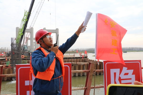 固蚌、蕪黃高速作為省委省政府規(guī)劃的“縣縣通高速”,將在2021年建成通車,這對于今年3月份項目才正式開工的全體建設(shè)者來說,無疑是個巨大挑戰(zhàn)。在淮河岸邊、澮河之上,青年黨員陸志康正在組織打樁機(jī)施工?!皾液犹卮髽蜷L2.6km,是安徽省首座組合梁系桿拱橋,引橋采用鋼板組合梁,建成后將成為澮河上的新地標(biāo),”他自信地說。不論是疫情防控后的復(fù)工復(fù)產(chǎn),還是抗洪期間,他都始終沖鋒在前,白天在一線蹲守,晚上研究解決問題的辦法。圓月初升,各個工位上的聚光燈,點(diǎn)燃寂靜夜空,將夜晚照得如同白晝明亮,陸志康乘著夜色仍在混凝土澆筑工點(diǎn),忘記了時間,只為了一個目標(biāo),就是要把項目又好又快建成。