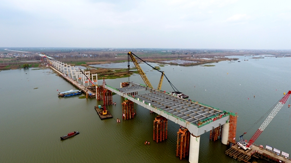為保證該項(xiàng)目控制性工程—澮河特大橋按時(shí)架好梁、鋪好板、出精品,項(xiàng)目嚴(yán)格把控工序,優(yōu)化資源配置,精選勞務(wù)隊(duì)伍。一套組合拳下來,澮河特大橋引橋鋼梁架設(shè)、橋面板安裝實(shí)現(xiàn)同步快速推進(jìn),主跨135米鋼梁僅余最后一節(jié)段架設(shè),即將實(shí)現(xiàn)合龍。