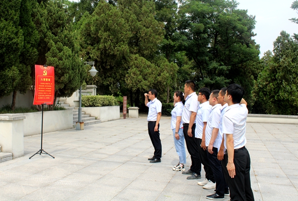 祭奠英烈開展革命傳統(tǒng)教育。在鳳陽縣烈士陵園,全體人員懷著無比崇敬的心情向革命烈士敬獻花籃,全體黨員重溫了入黨誓詞。大家參觀了革命烈士紀念館,進一步加深對黨的初心和使命的理解,不斷堅定信心,凝聚前行力量。