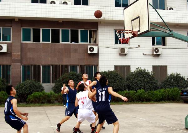 29日下午4:05,比賽在友好熱烈的氣氛中正式開始。比賽中,每位隊(duì)員都積極拼搶,穿插跑動(dòng)、擋拆掩護(hù)、突破傳球、空位投籃、卡位搶籃板,比賽激烈精彩。一次成功的配合,一次精彩的進(jìn)球,都能激起場(chǎng)邊啦啦隊(duì)員的激情喝彩。有的隊(duì)員在球場(chǎng)上被撞倒了,“犯規(guī)者”立即伸出手將他拉起,因?yàn)榍騿T們都知道“友誼第一、比賽第二”;有的隊(duì)員在比賽中受傷了,卻仍然坐在場(chǎng)邊給自己的隊(duì)友加油助威。