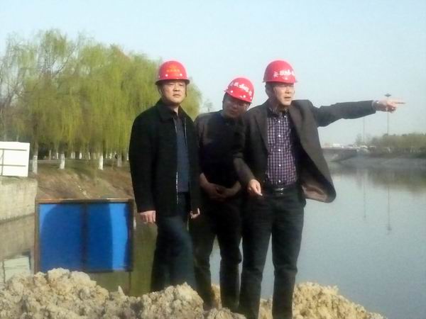 戴總在工程現(xiàn)場詳細(xì)詢問了宋斗灣路工程施工情況,特別是對(duì)跨南淝河橋橋梁墩柱、浮吊打設(shè)鋼管樁以及滿堂架現(xiàn)澆梁施工等進(jìn)行了探討,提出了一些建設(shè)性指導(dǎo)意見。