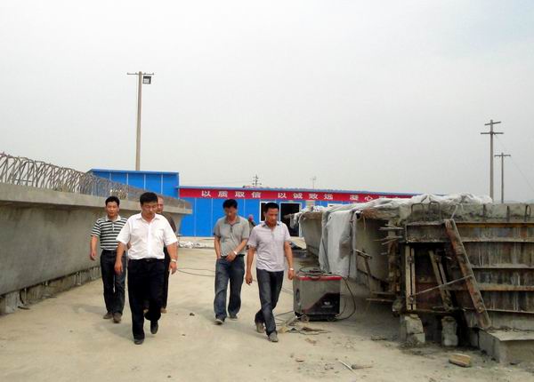 7月2日下午2點(diǎn)30分,汪總一行先來(lái)到馬鞍山東環(huán)改造項(xiàng)目指導(dǎo)工作,該項(xiàng)目經(jīng)理冷峰全程陪同。汪總一行首先頂著酷暑、披著煙塵,來(lái)到了該項(xiàng)目部的清淤現(xiàn)場(chǎng)、預(yù)制場(chǎng)和樁基現(xiàn)場(chǎng),仔細(xì)耐心的查看了各項(xiàng)施工任務(wù)的進(jìn)展情況以及質(zhì)量情況。隨后,在項(xiàng)目部會(huì)議室,汪總一行又聽(tīng)取了項(xiàng)目經(jīng)理冷峰關(guān)于近期該項(xiàng)目工程、試驗(yàn)、安全、財(cái)務(wù)等工作開(kāi)展情況的匯報(bào)后,在肯定了該項(xiàng)目前期工作的同時(shí),也針對(duì)其中的工程質(zhì)量、安全文明等存在的問(wèn)題,提出了寶貴意見(jiàn)。希望該項(xiàng)目能抓緊落實(shí),及時(shí)把問(wèn)題解決。該項(xiàng)目經(jīng)理冷峰表示一定會(huì)按照公司的意見(jiàn)與要求,解決問(wèn)題,提高工作水平。