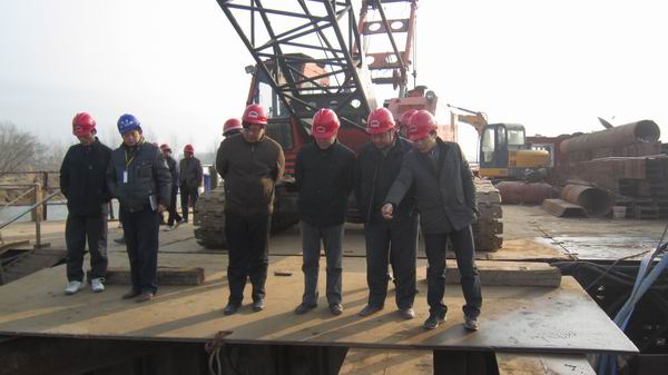 殷書記一行先后到箱梁預(yù)制場(chǎng)、鋼筋加工場(chǎng)、主墩鋼圍堰進(jìn)行了現(xiàn)場(chǎng)查看,并聽取了該項(xiàng)目負(fù)責(zé)人關(guān)于項(xiàng)目施工管理情況的匯報(bào)。在座談會(huì)上,殷書記對(duì)項(xiàng)目部前期取得的成績(jī)給予了充分肯定,也指出了存在的不足。周科長(zhǎng)就實(shí)地查看的情況進(jìn)行了總結(jié),指出從目前檢查情況來看,路基11標(biāo)在施工質(zhì)量上是下了功夫的,并鼓勵(lì)大家再接再厲,安全、優(yōu)質(zhì)、高效地完成這座特大橋的建設(shè)。