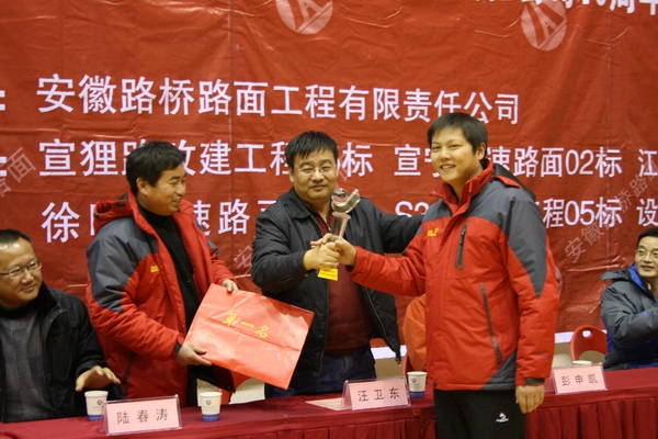 簡(jiǎn)短而隆重的開幕式之后, 公司副總劉要武為比賽開球,比賽正式拉開帷幕。揭幕戰(zhàn)在租賃公司與宣貍L5標(biāo)之間展開。雙方球員在場(chǎng)上發(fā)揚(yáng)了敢于拼搏、團(tuán)結(jié)奉獻(xiàn)的精神,精彩、激烈的場(chǎng)面不斷出現(xiàn),贏得了場(chǎng)下觀眾的一陣陣掌聲。在兩天的角逐中,各代表隊(duì)均表現(xiàn)優(yōu)秀,隊(duì)員們之間充分溝通、相互團(tuán)結(jié),充分展現(xiàn)了“比賽第二、友誼第一”的比賽精神。后勤代表隊(duì)技高一籌,最終以領(lǐng)先幾分的優(yōu)勢(shì)戰(zhàn)勝了宣貍L5標(biāo)代表隊(duì),贏得了比賽的冠軍,宣貍L5標(biāo)、徐明03標(biāo)分別獲得亞軍、季軍。宣寧路面02標(biāo)、撫吉BP2標(biāo)、租賃公司分別獲得優(yōu)秀組織獎(jiǎng)、精神風(fēng)貌獎(jiǎng)和道德風(fēng)尚獎(jiǎng)。