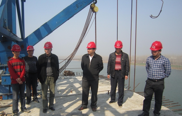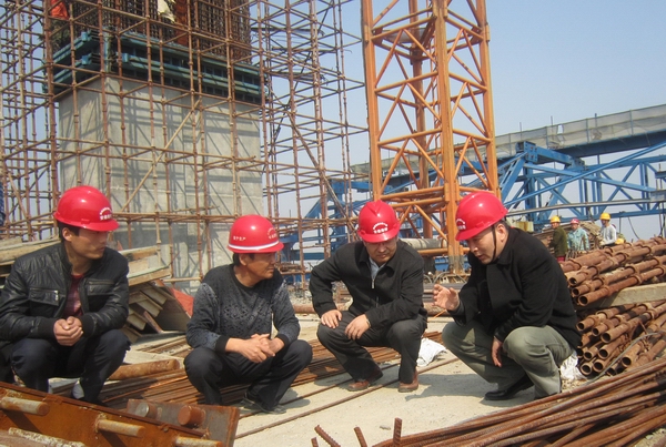 汪總一行深入施工現(xiàn)場,實地查看當前的施工進展情況。在主橋施工現(xiàn)場,汪總仔細詢問了關鍵性節(jié)點工程的施工計劃,現(xiàn)場探討了質量、安全管理等問題,并對項目施工可能遇到的難題進行了溝通。