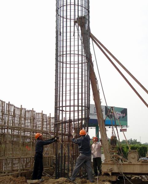 雖然我部一直面臨著征地問題、設(shè)計變更以及連續(xù)陰雨天氣等一系列不利因素的影響,但在項目經(jīng)理冷峰的正確領(lǐng)導(dǎo)下,在全體員工的共同努力下,合理配置、精心準(zhǔn)備,按計劃如期開展了立柱施工工作。