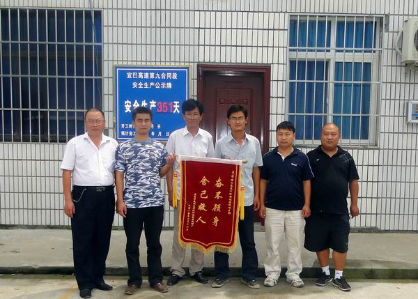 715,公司宜巴09標(biāo)項(xiàng)目部禮炮聲隆隆,喜氣洋洋。宜昌市夷陵區(qū)霧渡河鎮(zhèn)富貴汽修廠為感謝公司員工奮不顧身?yè)尵嚷渌藛T特送來(lái)錦旗,錦旗上寫(xiě)著“奮不顧身,舍己救人”。