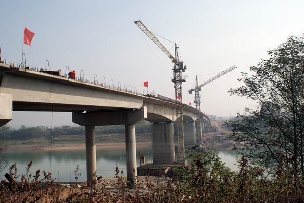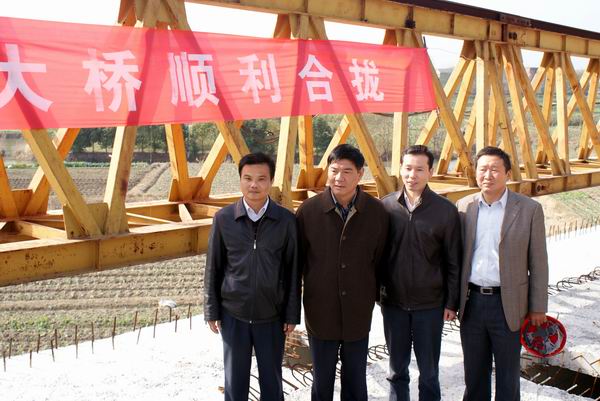 青弋江大橋全長454米,凈寬11米,結(jié)構(gòu)形式為30×10+70+42×2的簡(jiǎn)支箱梁與現(xiàn)澆懸臂橋。該工程于2007年開工,前期由于施工條件的限制和其它不利因素,工程進(jìn)展頗不順利。后來在公司領(lǐng)導(dǎo)的大力支持下,全體施工人員上下合力,積極創(chuàng)造條件進(jìn)行施工,全橋終于順利合龍。盛總在合龍現(xiàn)場(chǎng)指出,雖然大橋已順利合龍貫通,但后期任務(wù)還相當(dāng)艱巨,橋面、護(hù)欄、橋頭搭板和護(hù)坡等都需要抓緊施工,在保證質(zhì)量、保證安全的情況下,組織力量加快施工進(jìn)度,確保實(shí)現(xiàn)元月通車的目標(biāo)。