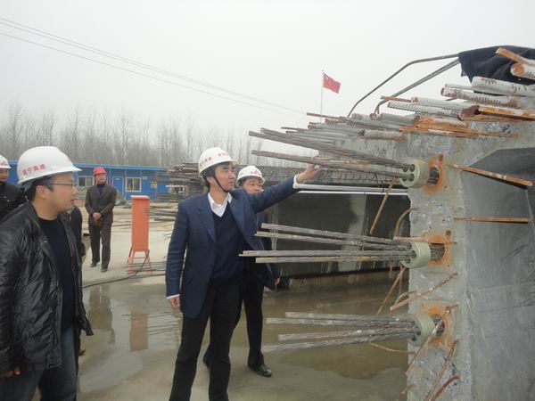 視察過程中,何站長對我部預(yù)制梁場的施工質(zhì)量、工藝給予了充分的肯定和贊揚,通過察看安全警示牌、詢問現(xiàn)場安全員,對我部安全工作的全面細(xì)致也豎起了大拇指,并對我安徽省公路橋梁工程公司表達(dá)了由衷的贊許。在肯定我們的工作成績的同時,何站長也要求我們要繼承和發(fā)揚安徽省路橋公司的優(yōu)良傳統(tǒng),細(xì)化工作、進一步提高工程質(zhì)量。