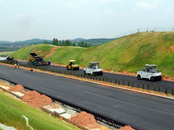 上午9時(shí),各項(xiàng)工作準(zhǔn)備就緒,隨著項(xiàng)目經(jīng)理一聲令下,拌合樓、攤鋪機(jī)、壓路機(jī)等設(shè)備全部運(yùn)轉(zhuǎn)起來(lái)?,F(xiàn)場(chǎng)施工人員各司其職,井然有序。隨著一車(chē)車(chē)混合料倒進(jìn)攤鋪機(jī)料斗,一段平整的瀝青中面層呈現(xiàn)在眼前。經(jīng)過(guò)壓路機(jī)的反復(fù)碾壓,最終經(jīng)現(xiàn)場(chǎng)試驗(yàn)檢測(cè),各項(xiàng)數(shù)據(jù)均符合施工規(guī)范要求,為下階段大面積施工奠定了基礎(chǔ)。